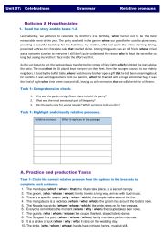 Use these worksheets to introduce or review relative clauses and relative pronouns using the theme of celebrations. Hope it helps.