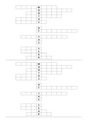 An acrostic in which students have to fill in the boxes forming names of the twelve months of the year. There are two per page for economic reasons.
