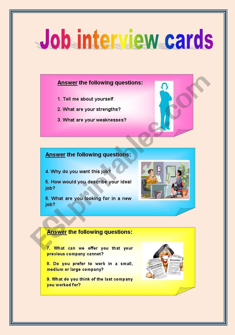 Speaking worksheets > Conversation > Conversation cards > CONVERSATION CARDS: JOB INTERVIEW QUESTIONS