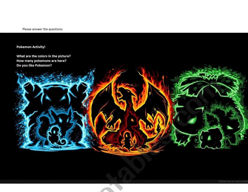 Teaching resources > Kids worksheets > Pokemon > Pokemon Activity