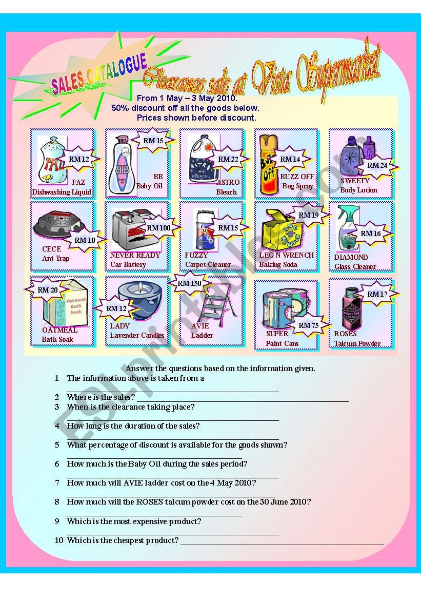 I created this catalogue to teach shopping, comprehension, countable/uncountable nouns, comparatives, common and proper nouns etc. I hope you guys find it useful too. Cheers.