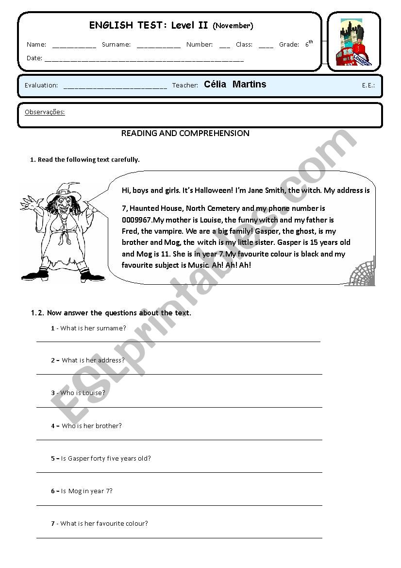 TEST - 6th form - ID, countries, dates, to be, pers pron, poss adj...