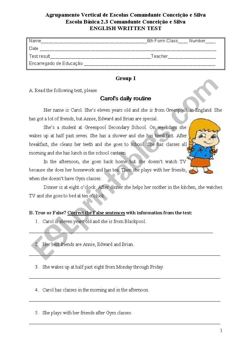 This is an evaluation test that I´ve made foe my 6 grader´s. Hope you´ll find it helpfull.