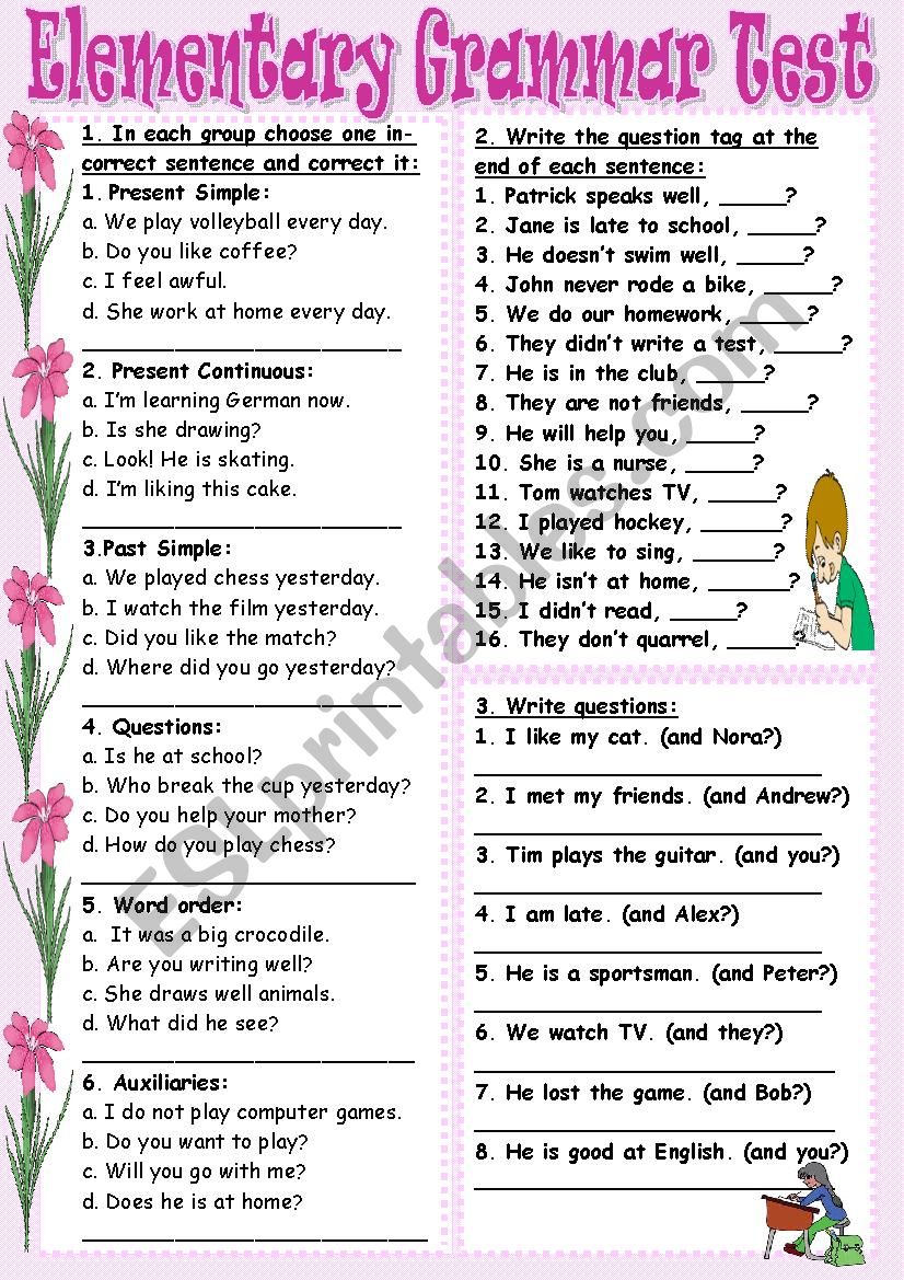 Elementary Grammar Test worksheet