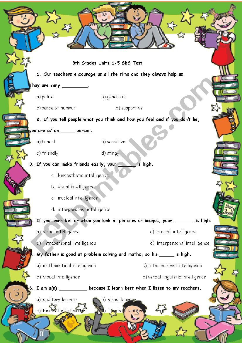 Teaching resources > Tests and exams > SBS > 8th Grade Spot On SBS Test Units 1-5