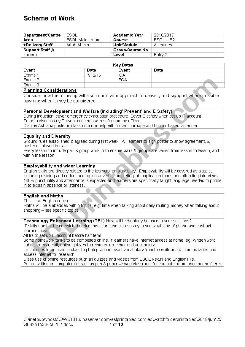 A comprehensive scheme of learning for entry 2/A2/elementary level students to deliver the required content for persona, social and competence development and in order to undertake examination for either Trinity and or City and Guild ESOL for entry 2. Suitable for modifications, also based on well known resource books.