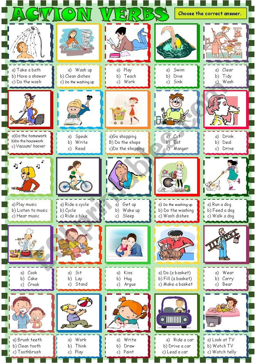 Hello, some new activities to learn or revise some basic action verbs, first a brand new multiple choice activity. Have a good weekend, Sylvie!:))