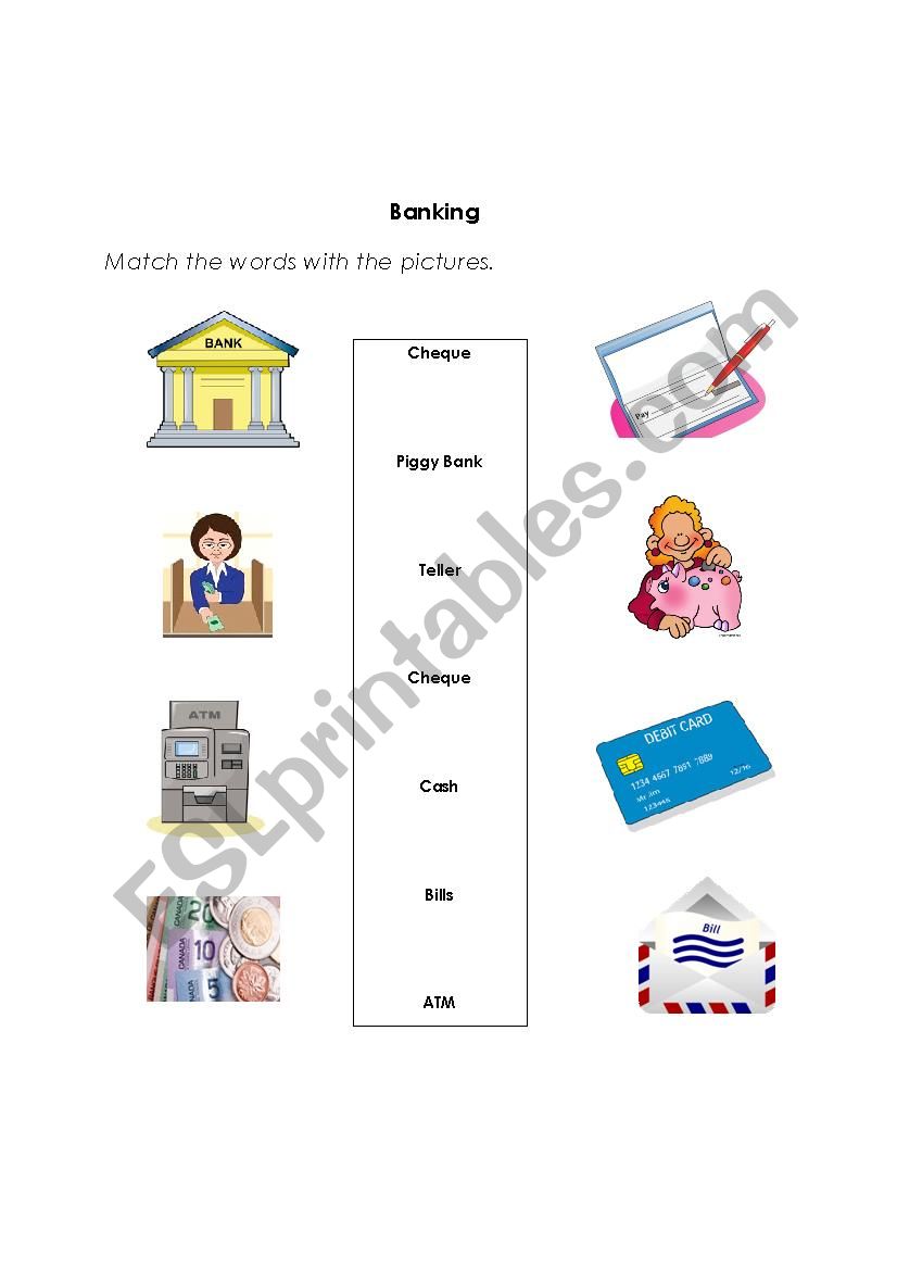 The learners will learn about some actions /activities in a bank, and match the vocabulary words with the pictures.