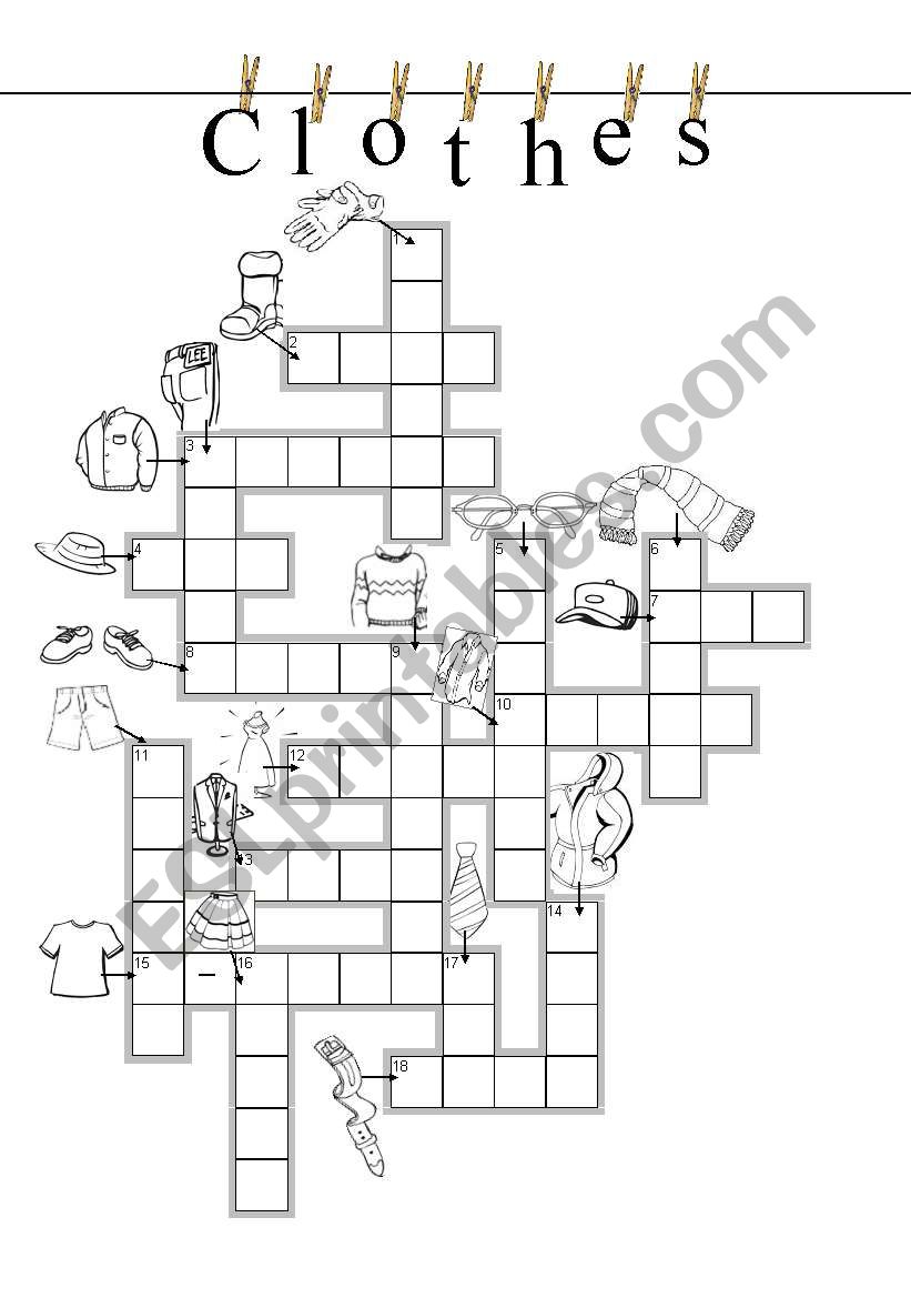 Vocabulary worksheets > Clothes > Clothes crossword > Clothes Crossword