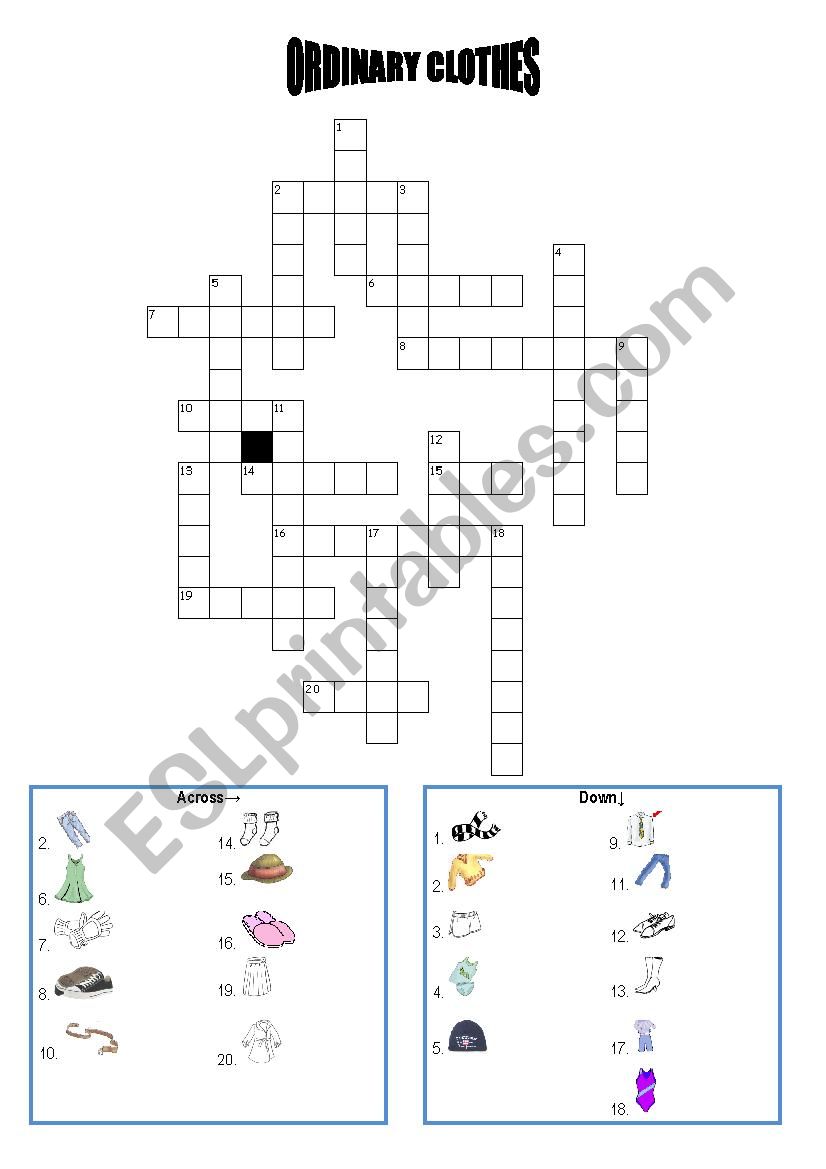 Vocabulary worksheets > Clothes > Clothes crossword > clothes crosswords