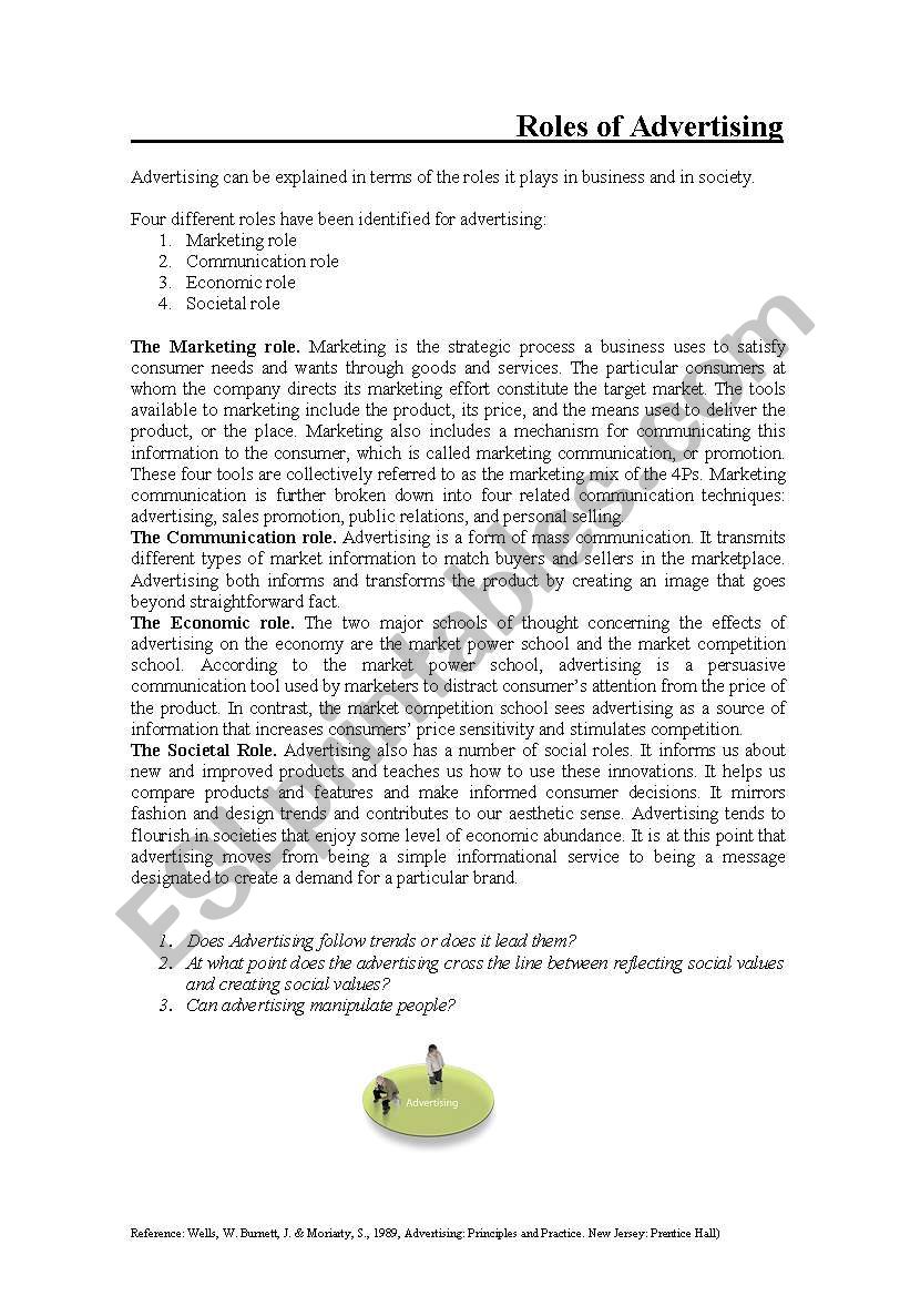 ROLES OF ADVERTISING worksheet