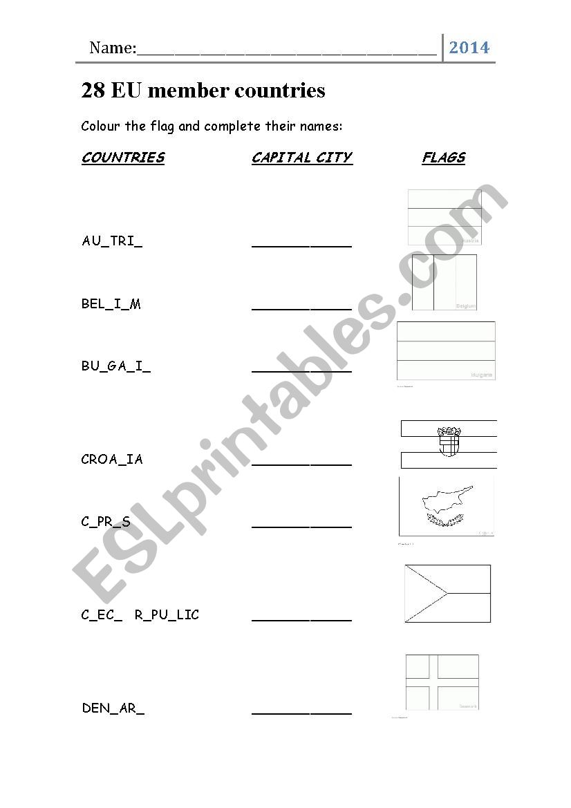 Vocabulary worksheets > Countries and nationalities > European Union > 28 EU Members