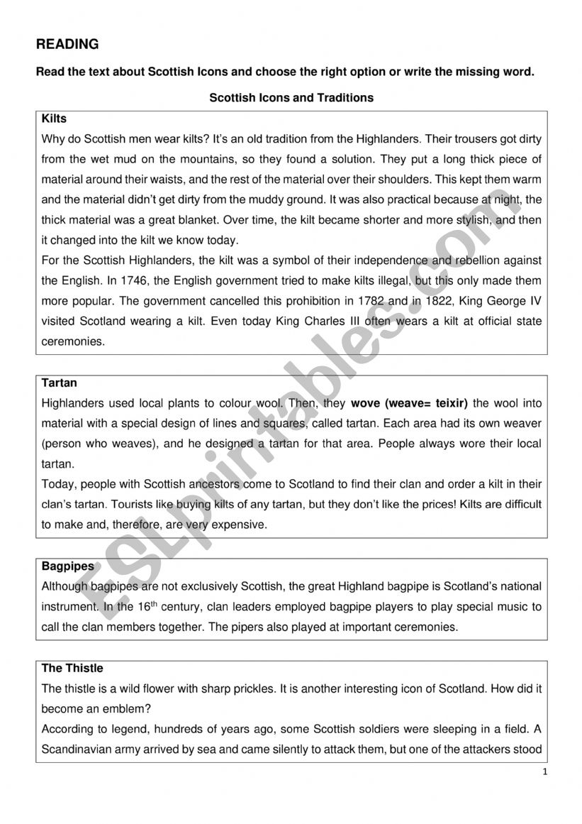 Vocabulary worksheets > Countries and nationalities > Scotland > Reading Scotland Facts