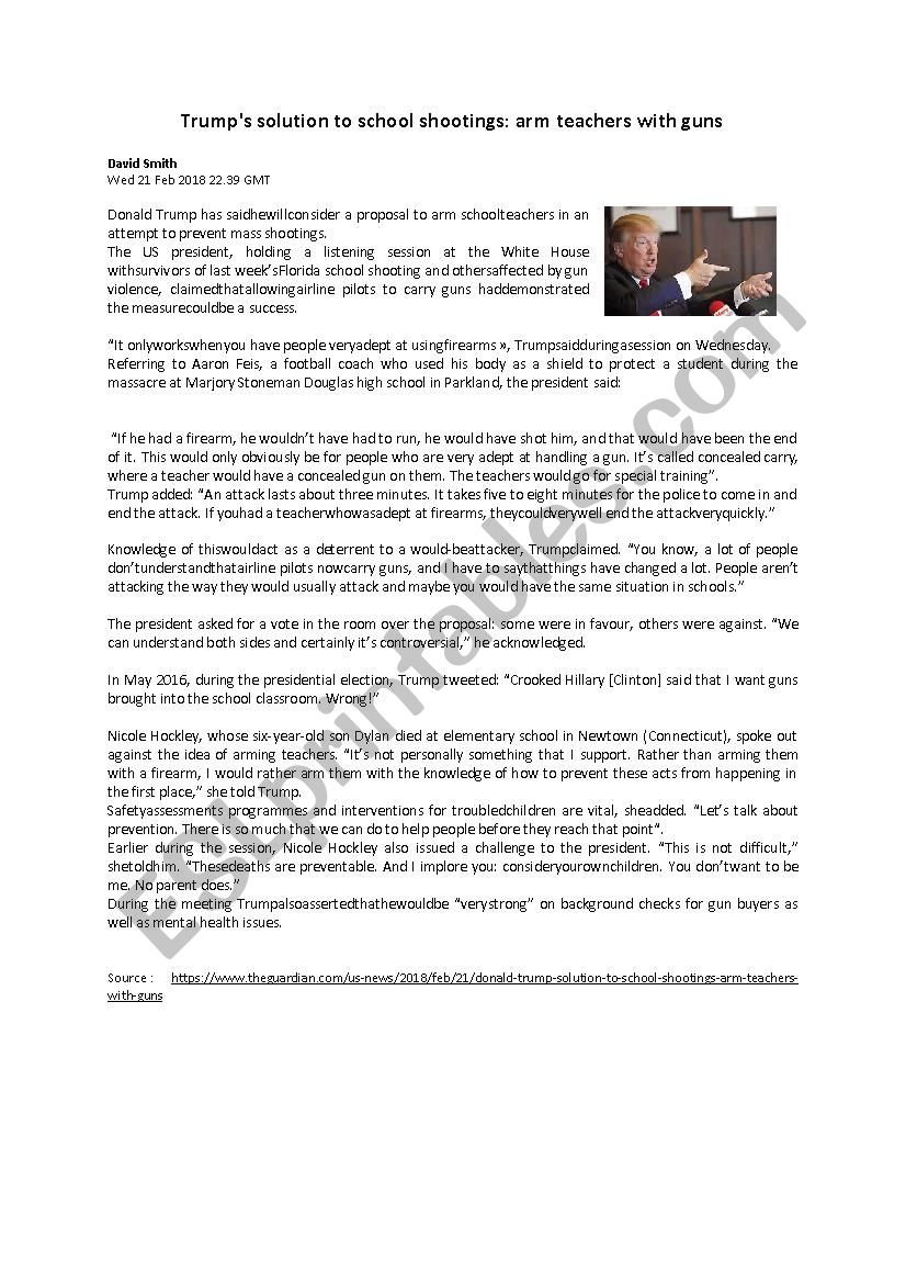 Vocabulary worksheets > Countries and nationalities > The USA > Trump and guns in the US