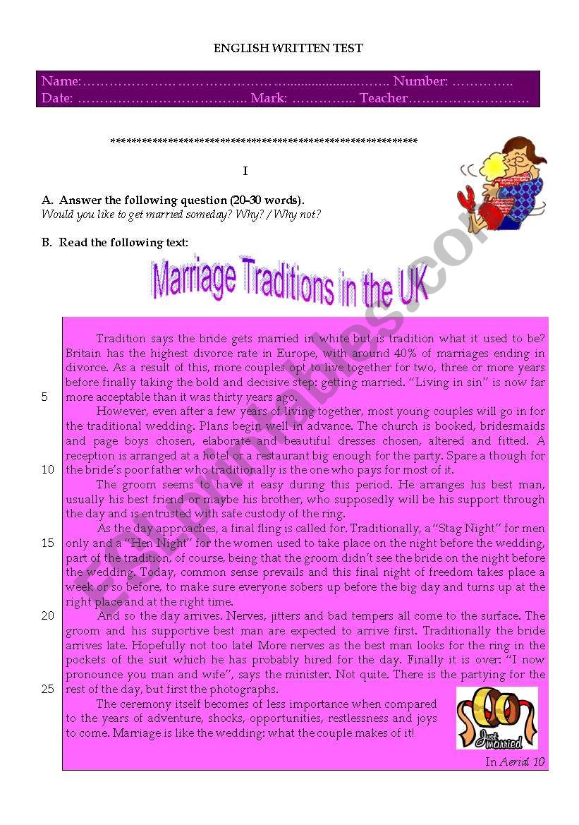Vocabulary worksheets > Culture and traditions > Marriage > marriage traditions in the UK