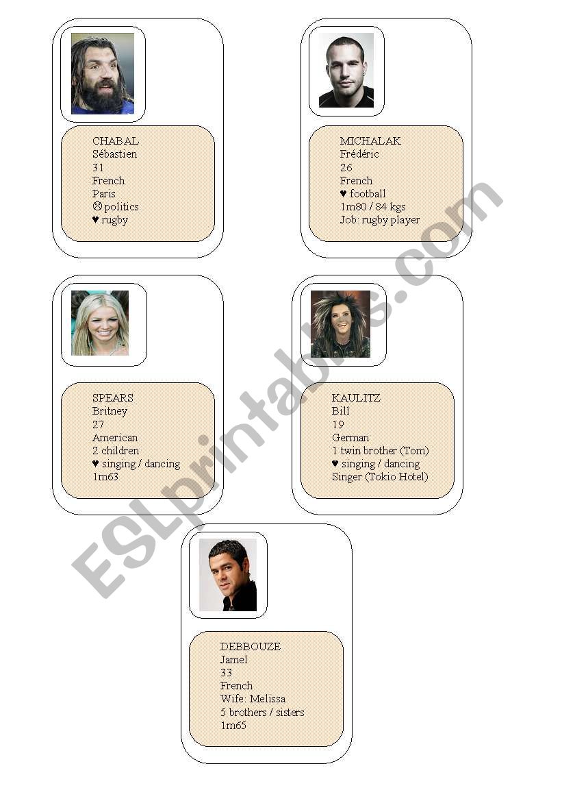 Use these cards (based on a famous game) to introduce people. Use 3rd person.