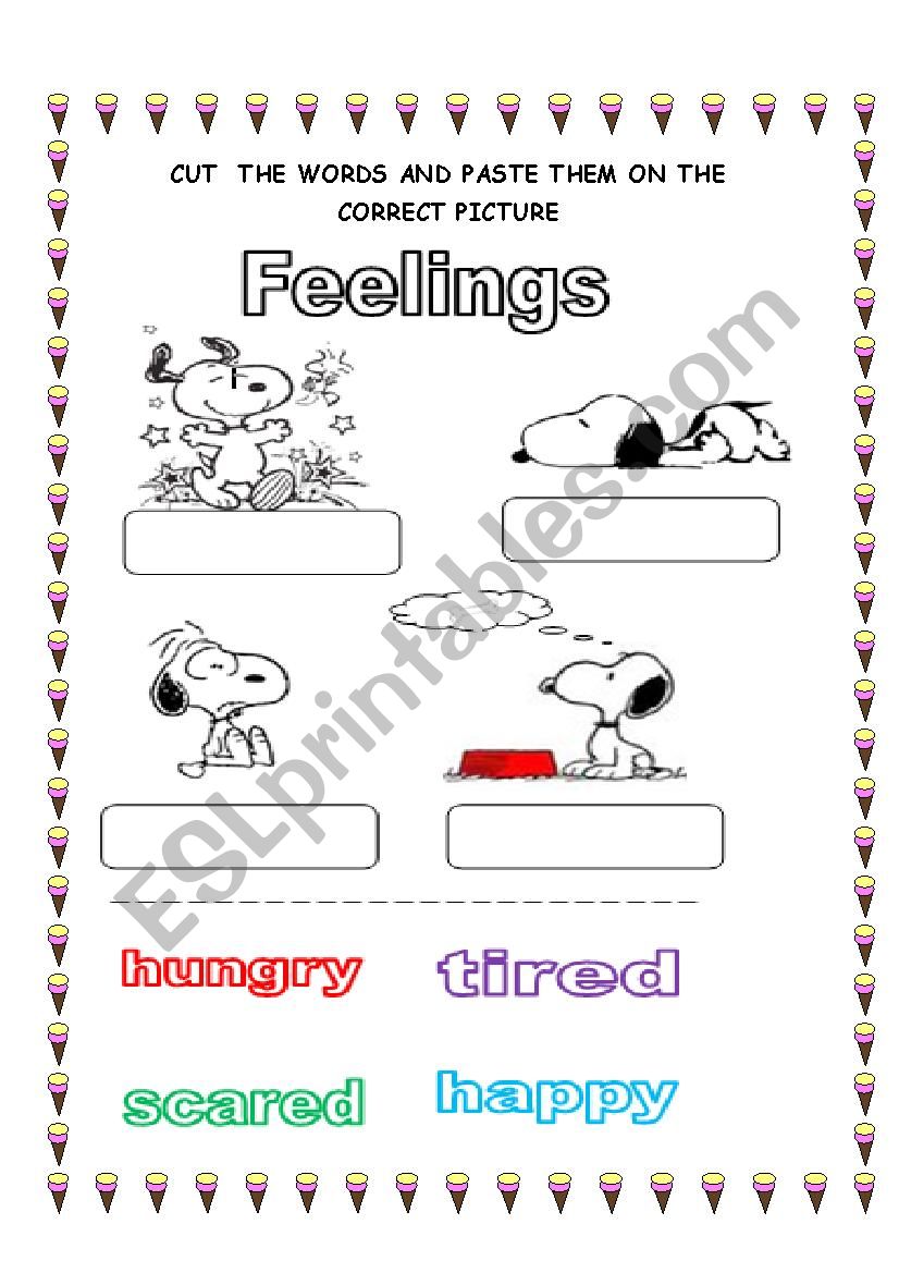 This easy worksheet is for identifying four basic feelings based on some funny pictures.