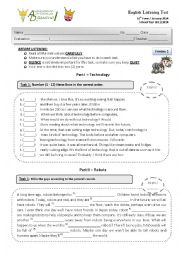 This test is for advanced students and comprises reading acts, language work and written production. The topic is the recent developments of Robotics in South Korea and it argues whether humans should develop robots that are smarter than humans.