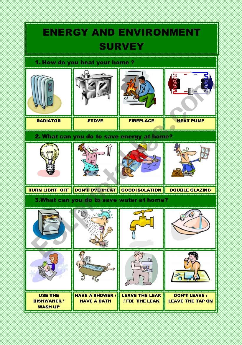 Helped by the pictures students can answer questions about their house and discuss the different ways to save energy and water at home.