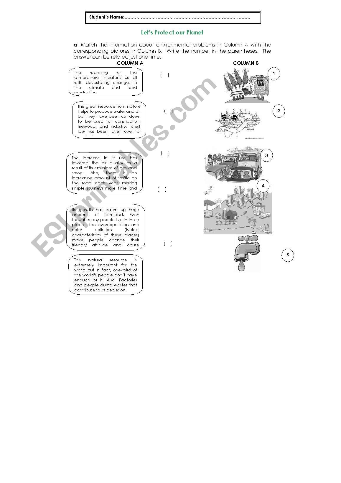 these are exercises where the teacher expose some environmental problems and place to std in a position where he gets to write about an environmental problem in its own country and may be think of solutions