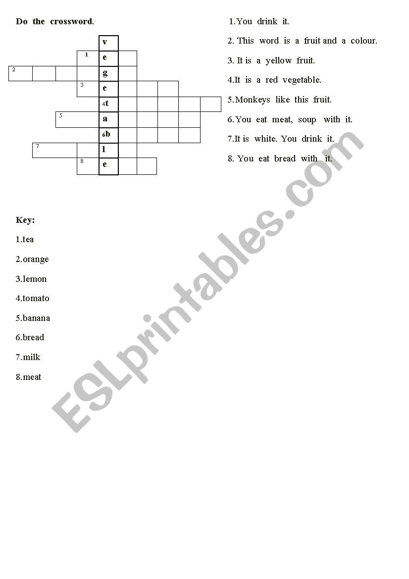 Vocabulary worksheets > Food > Food crosswords > Crossword Food