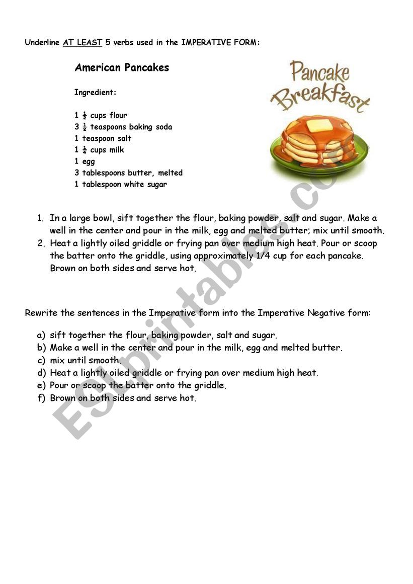Imperative Pancake recipe worksheet