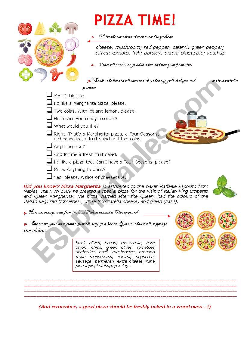 Vocabulary worksheets > Food > Pizza > Pizza Time!