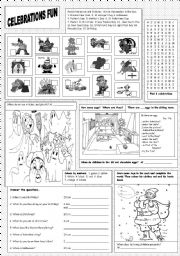 I was inspired by other members to make a worksheet about celebrations/holidays.This worksheet is different,though.It features vocabulary as well as reading.Enjoy it.