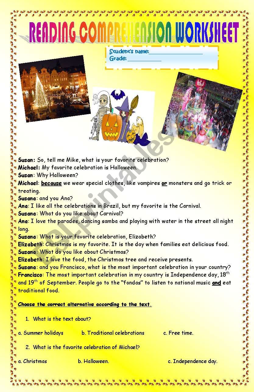 READING COMPREHENSION ABOUT CELEBRATIONS