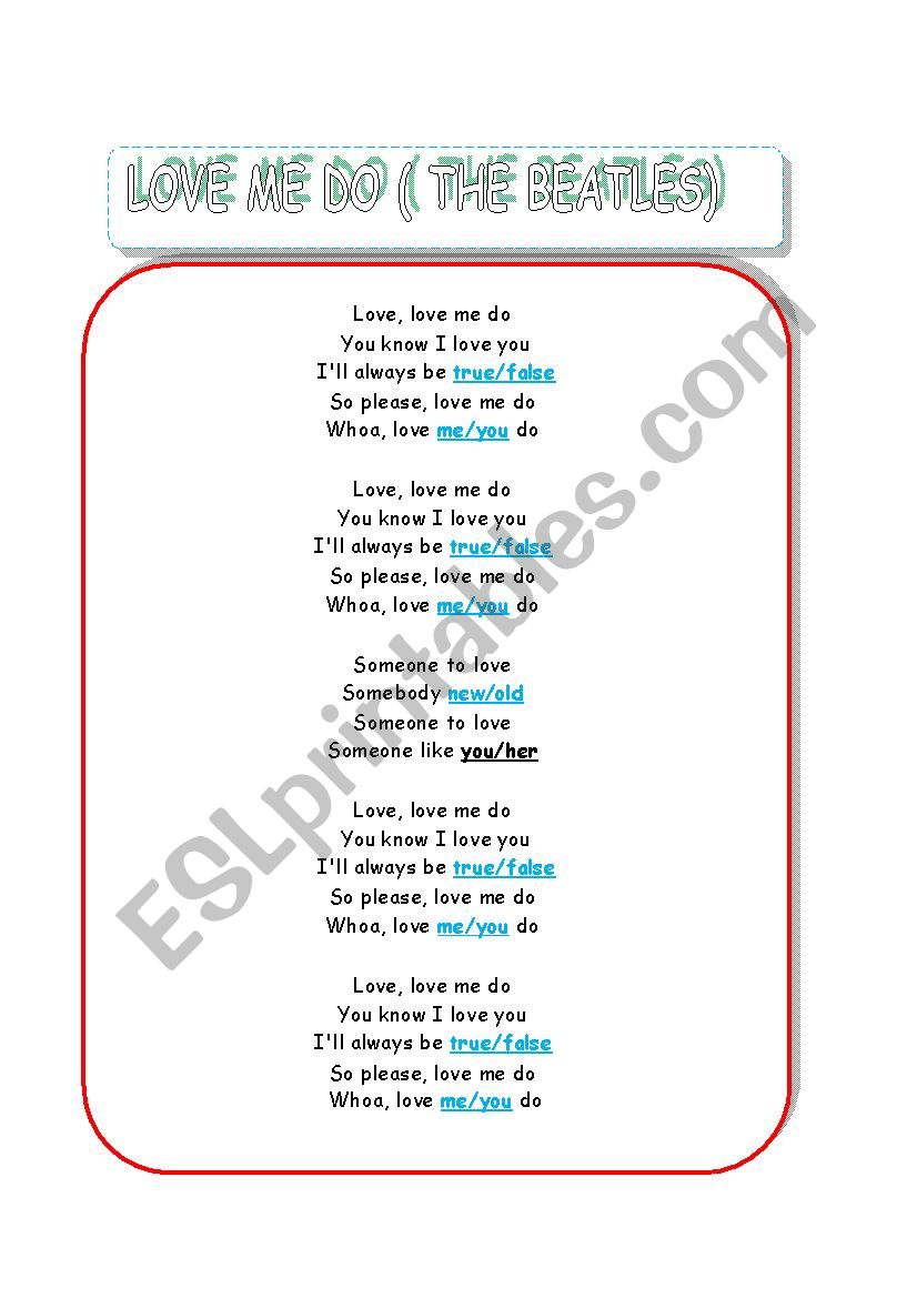 Vocabulary worksheets > Friendship > Love > LOVE ME DO- THE BEATLES
