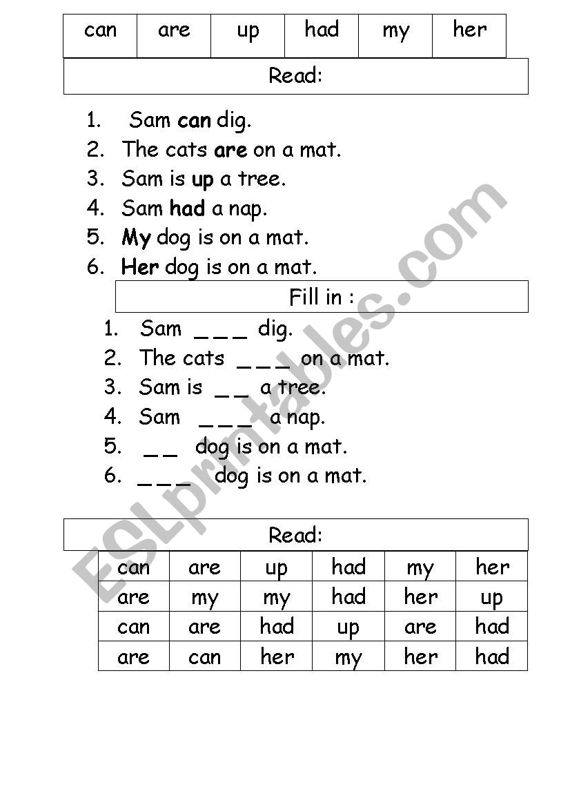 Vocabulary worksheets > General vocabulary > High frequency words > high frequency words