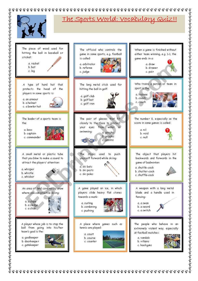 THE SPORTS WORLD: VOCABULARY QUIZ!
