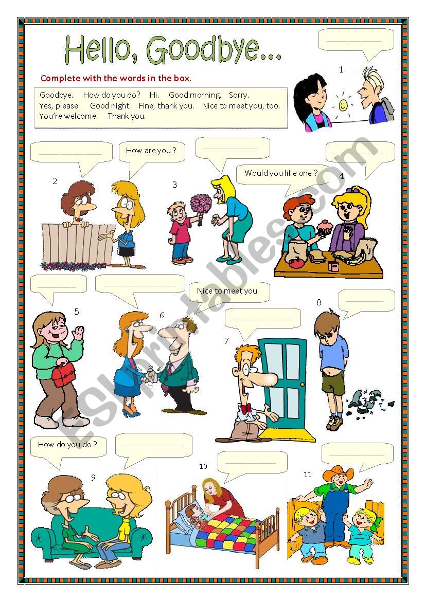 Vocabulary worksheets > Greetings > Hello-goodbye > Hello, goodbye,etc.