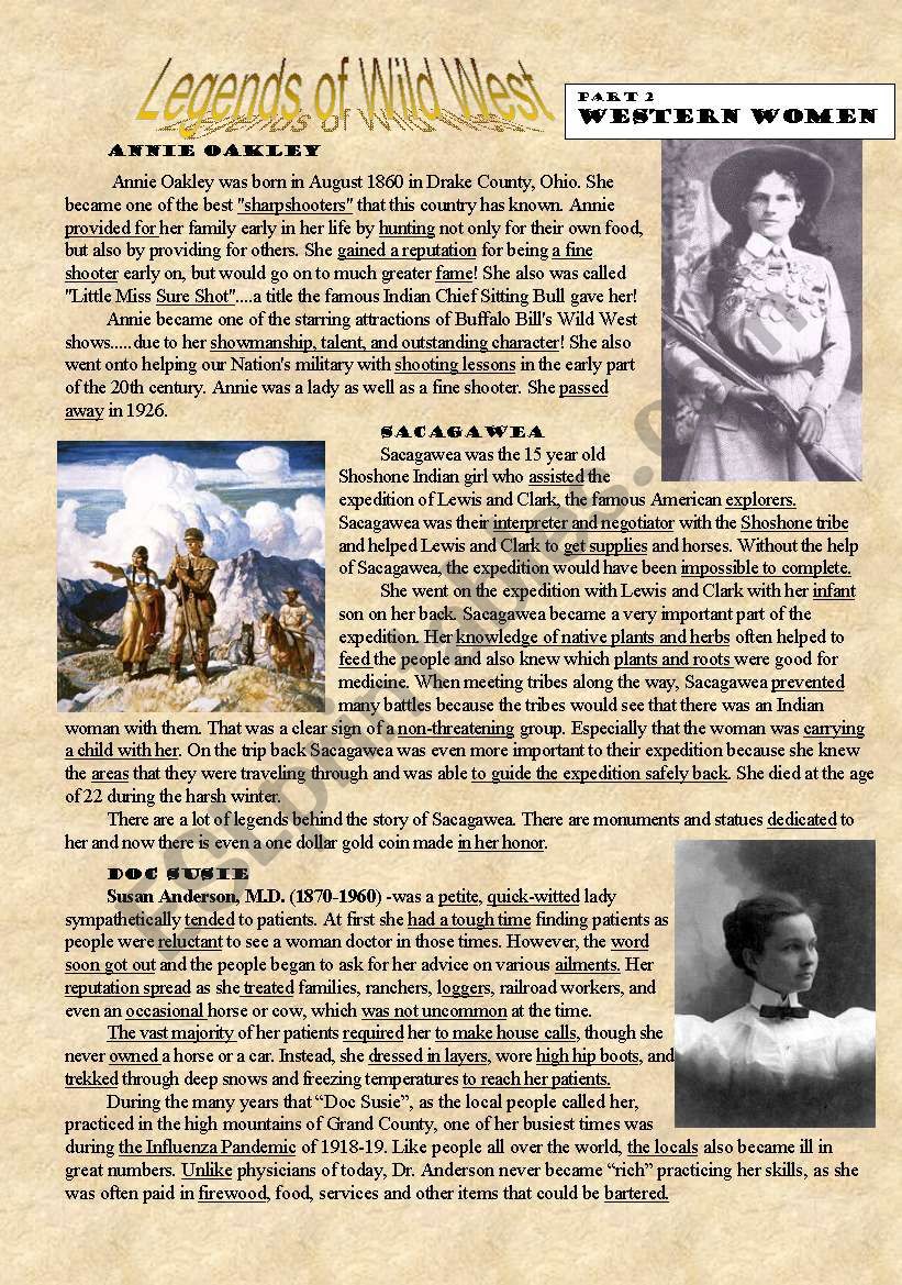 Legends of Wild West - part 2 - Western Women (reading) worksheet