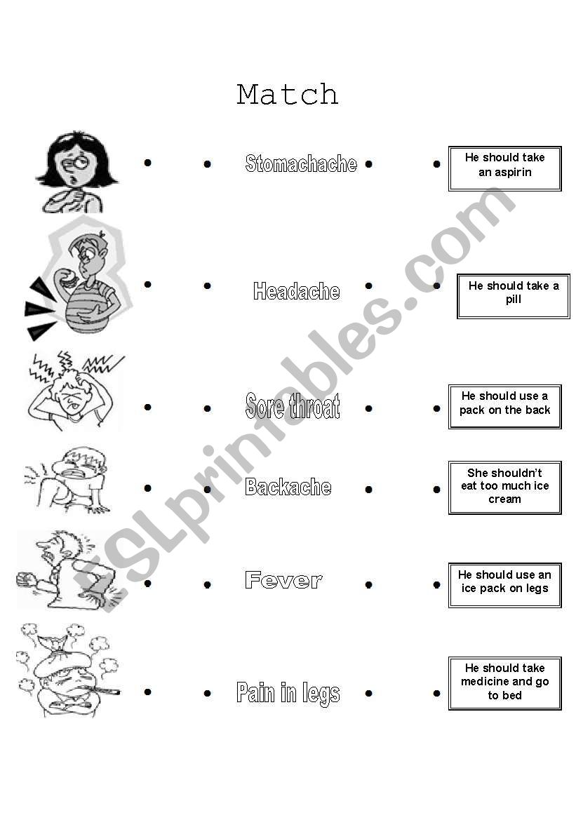 Vocabulary worksheets > Health > Treatments and remedies > Match the disease with the treatment
