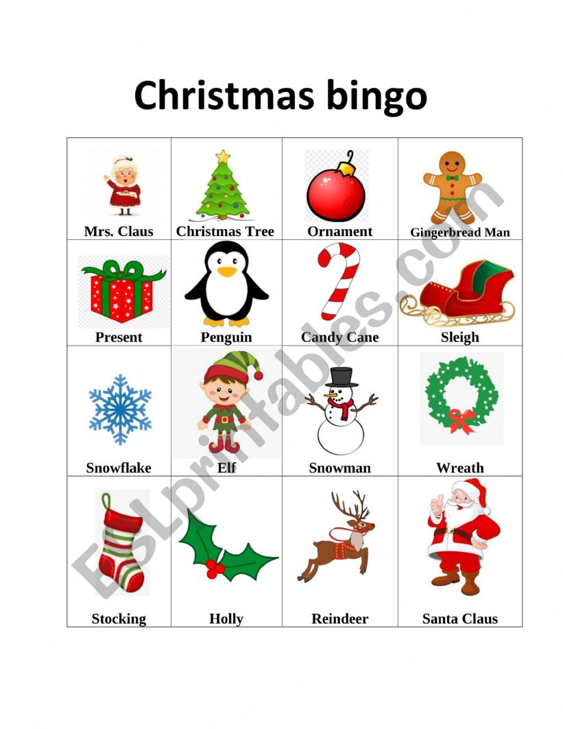 Vocabulary worksheets > Holidays and traditions > Christmas > Christmas bingo > Christmas Bingo ESL 1st of primary