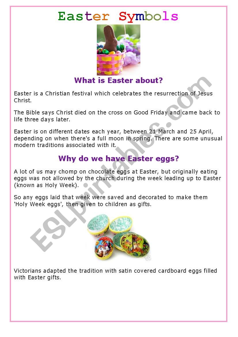 A simple but very nice text explaining what is easter and where does it come from. Explains mainly the symbolgy.