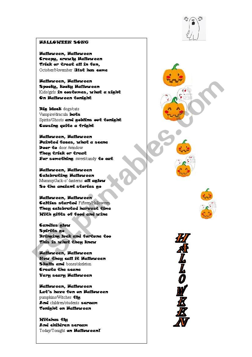 This song is an excellent resource to practice halloween vocabulary and listening skill.The students must choose the correct word at the same time they are listening the song.