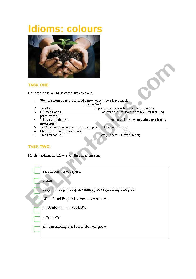Vocabulary worksheets > Idioms > Colour idioms > idioms: colours