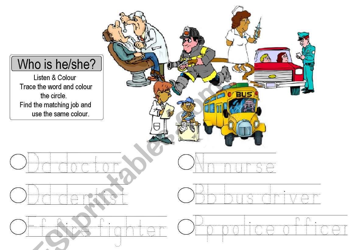Vocabulary worksheets > Jobs/occupations/professions > Jobs > Jobs picture and tracing