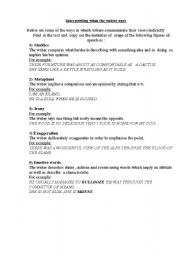 Interpreting what the writer says with a help of figures of speech as similies,metaphors,i rony and exaggeration.