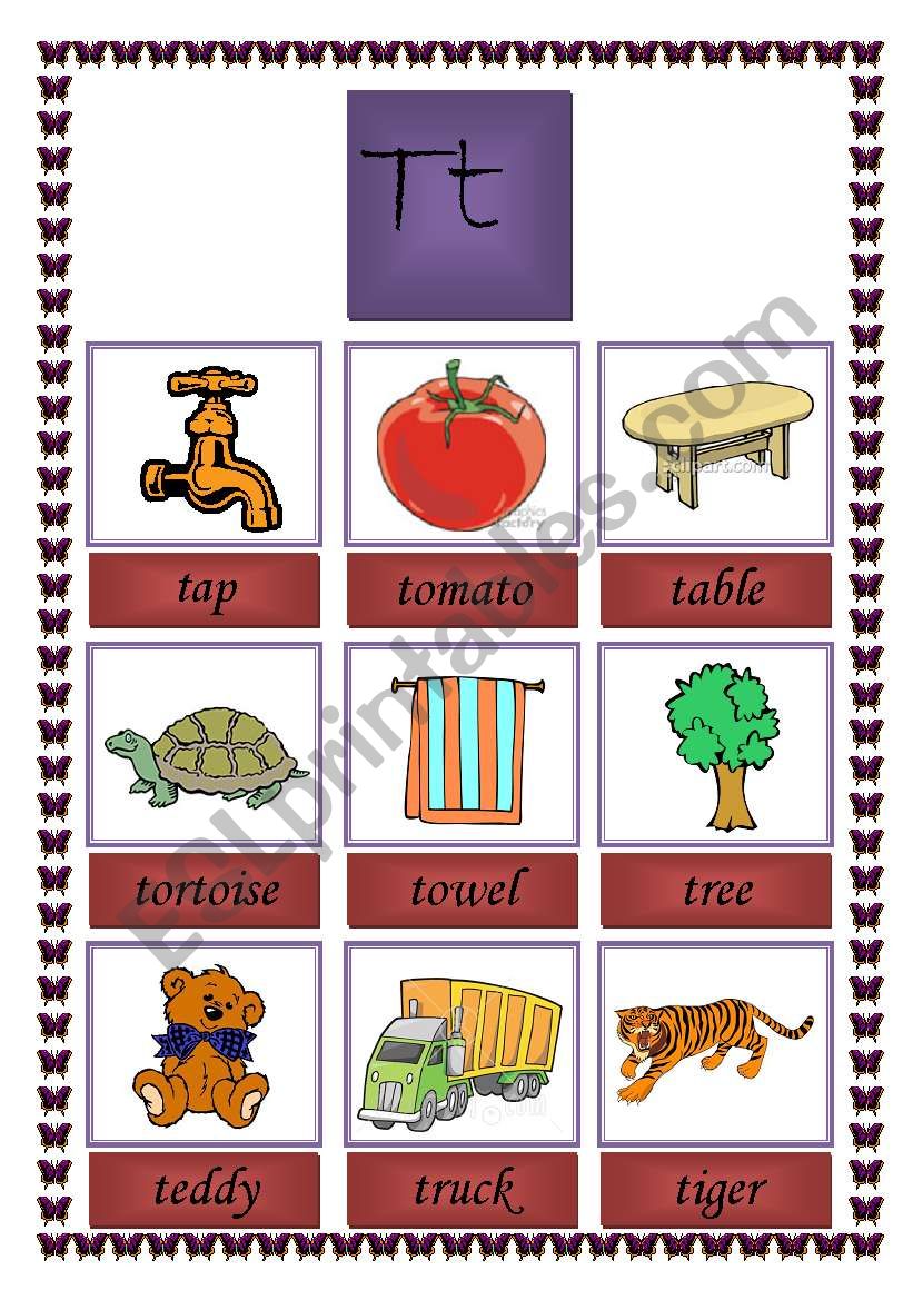 Picture dictionary letter t ( TWO PAGES) worksheet