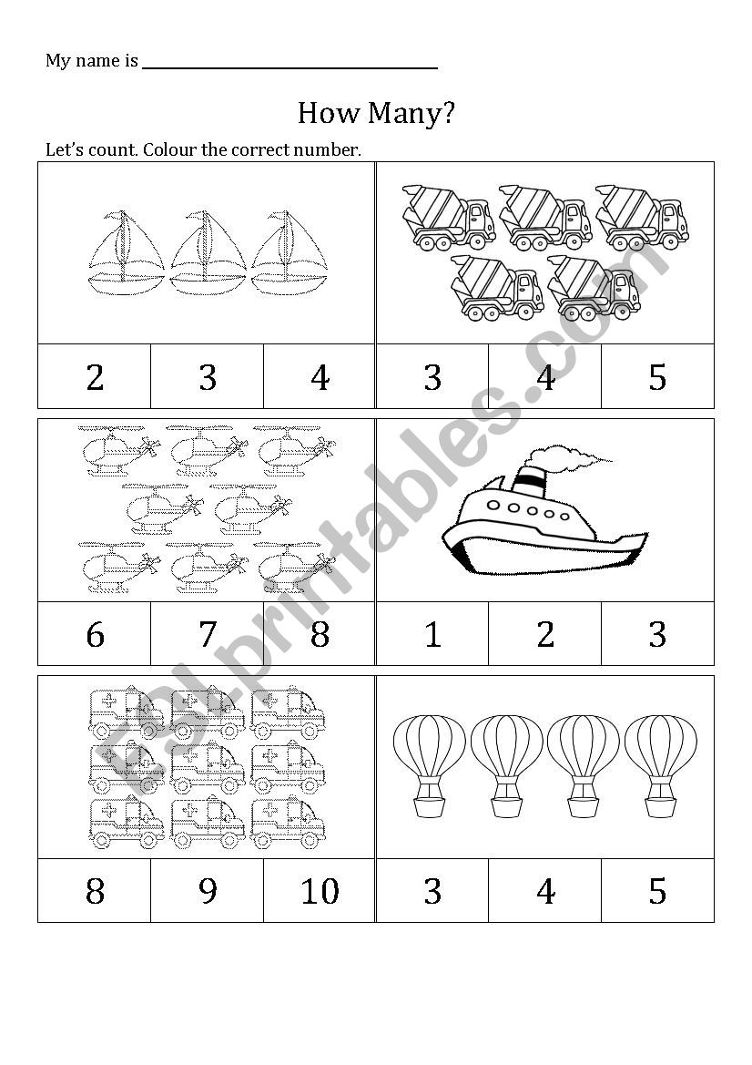Vocabulary worksheets > Numbers > Counting > Counting - Transport Theme