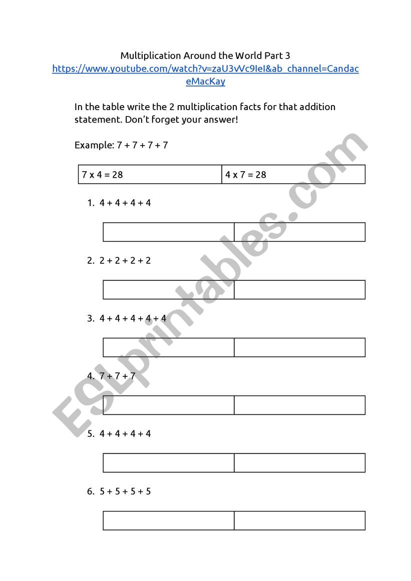 Vocabulary worksheets > Numbers > Multiplication > Multiplication Around the World Part 3