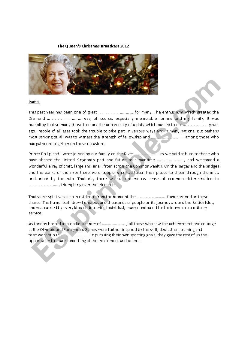 Queen Elizabeth: Christmas speech 2012 worksheet