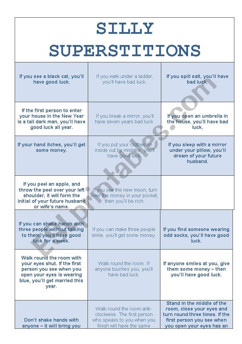 Vocabulary worksheets > People > Superstitions > Silly Superstitions