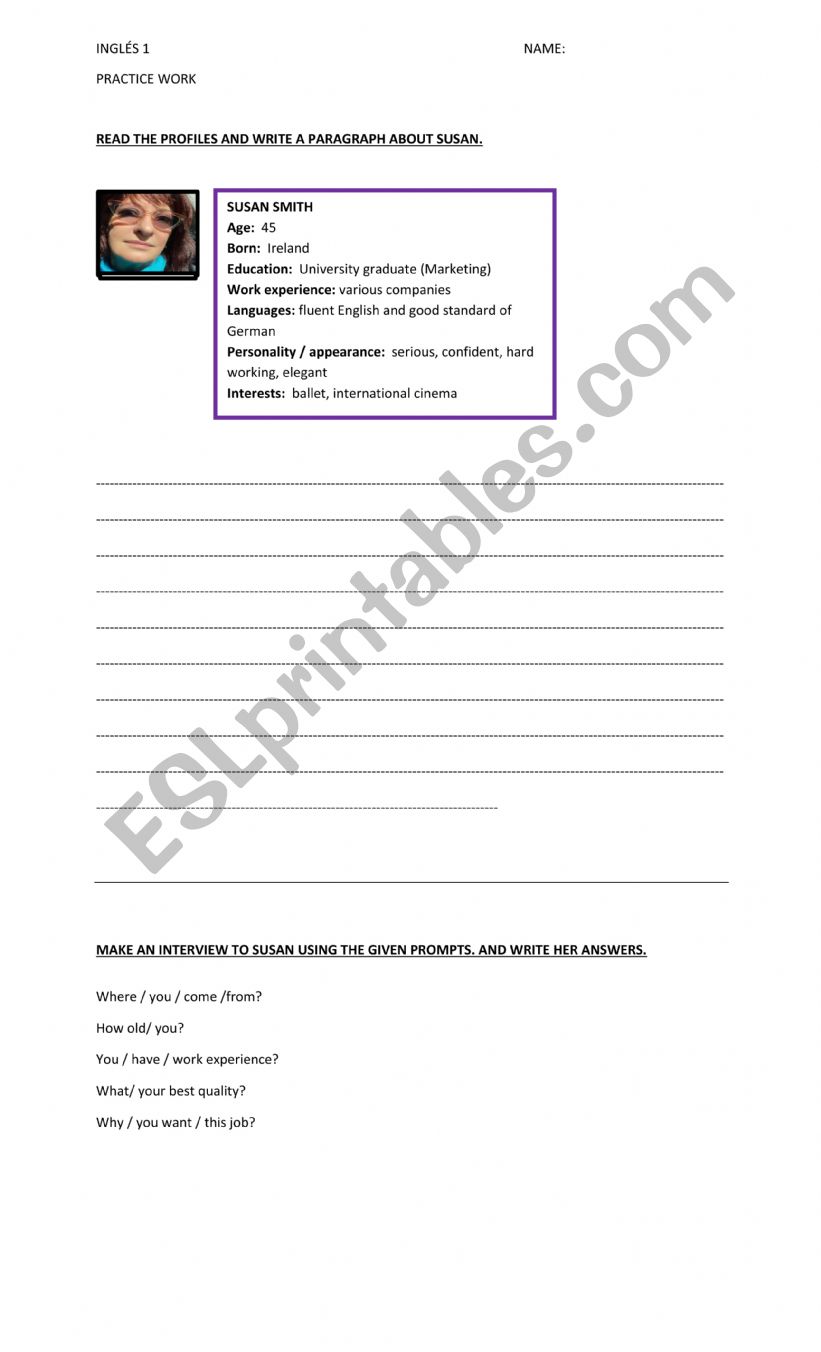 I used this worksheet as a practice work with my adult students who were learning how to make personal questions and describe someone`s personal life.