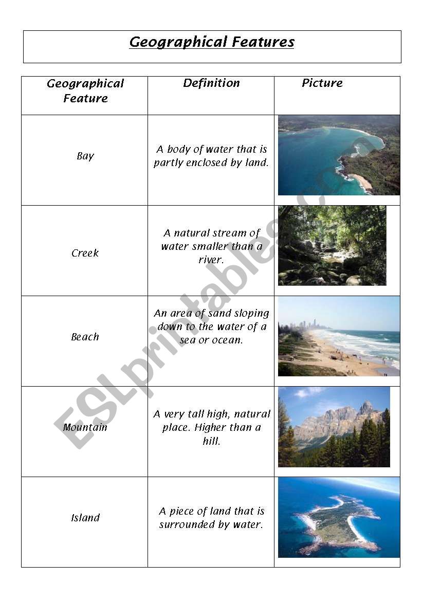 Vocabulary worksheets > Places > Geographical features > Geographical features (part1)