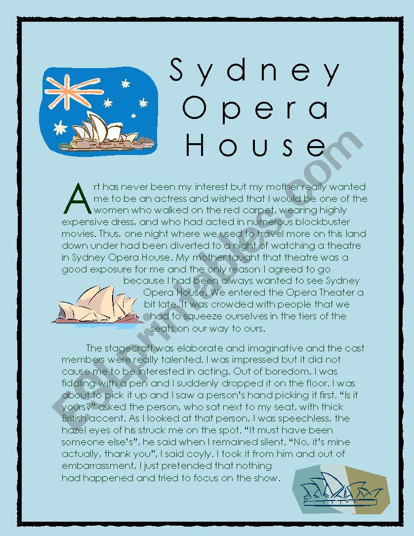 This is a story I wrote based on the "Sydney Opera House" in Australia, there are also other stories: Taj Mahal, Great Wall of China, Statue of Liberty, Eiffel Tower, Colosseum, Petra, Pyramid of Giza, Machu Picchu, and Christ the Redeemer. Download them too!