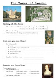 Reading comprehension about the Tower of London, includes comprehension questions plus questions for discussion.